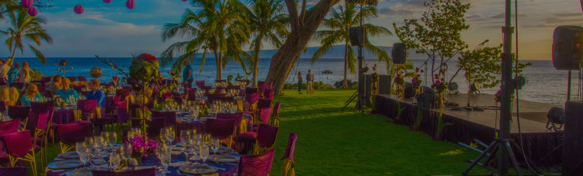 Welcome to Winters Events, your premier event, party, and wedding rental company located on the beautiful slopes of Haleakala in Kula, Maui. We specialize in making your special occasions unforgettable with our extensive selection of high-quality event rentals, including charger plate rental for that added touch of elegance. From elegant chameleon chair rentals and specialty linen rentals to charming event decor rentals like lanterns and mirror cubes, we have everything you need to create the perfect ambiance. Our dedicated team is committed to exceptional customer service and attention to detail, ensuring a seamless and stress-free experience from start to finish. Let us help you bring your vision to life—contact us today to start planning your dream event!